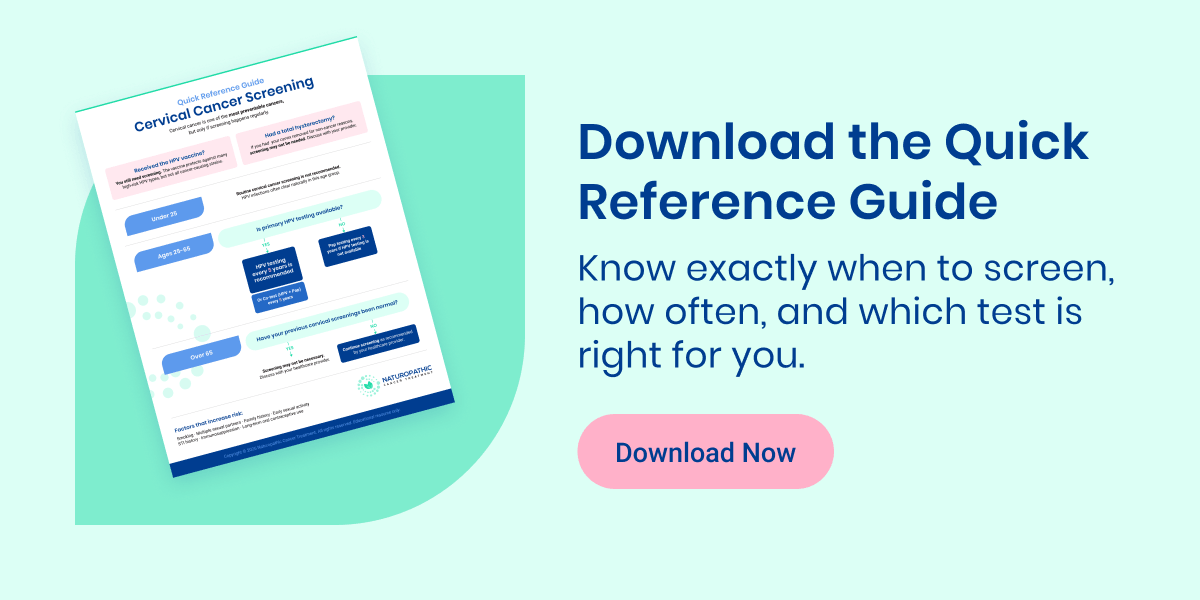 If you’ve had a total hysterectomy (removal of the cervix) for non-cancerous reasons, screening may no longer be necessary – but this should always be discussed with your provider.